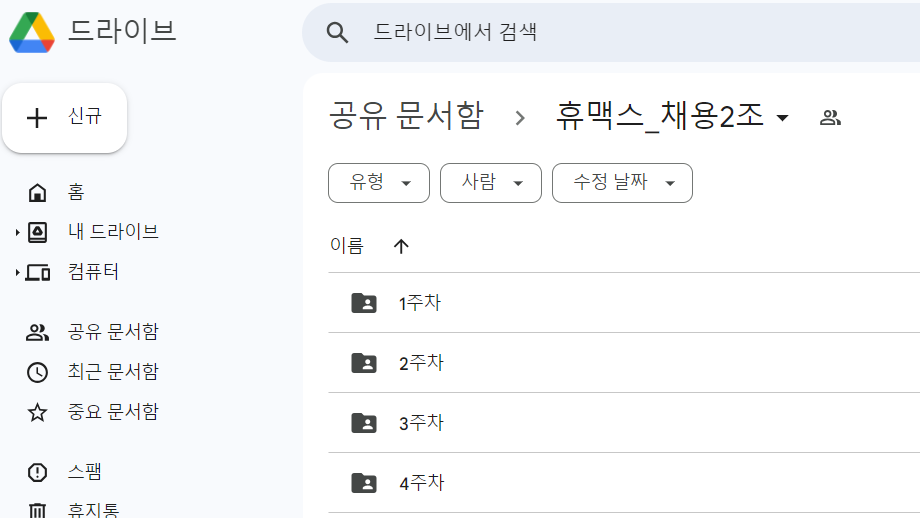 휴맥스 드림버스컴퍼니의 공지사항이나 업무공유는 아지트를 통해 이루어졌다. 우리조는 그 안에 또 새로운 그룹을 만들어 소통했다. 업무 외 미션들이 있는데 그런 미션을 서로 공유할 수 있었다. 업무 자료를 구글 드라이브를 통해 작업했다. 1주 차부터 4주 차까지의 폴더인데, 안에는 업무와 관련된 내용이 너무 많아 폴더만 캡처했다. 팀미팅 멘토님 피드백은 회의록처럼 기록하여 남겨두었고, 분업한 자료를 한 번에 모아 검토하면서 인사이트를 도출하는 도구로 사용되었다. 맨 오른쪽 사진은 직무심화교육 때 노션으로 공고문을 작업했던 사진이다. 일경험 업무보고는 PPT로 발표하지만 내용으로 구성되는 채용홈페이지나, 채용 공고문은 노션으로 작업하여 직관적으로 구현해 볼 수 있었다.