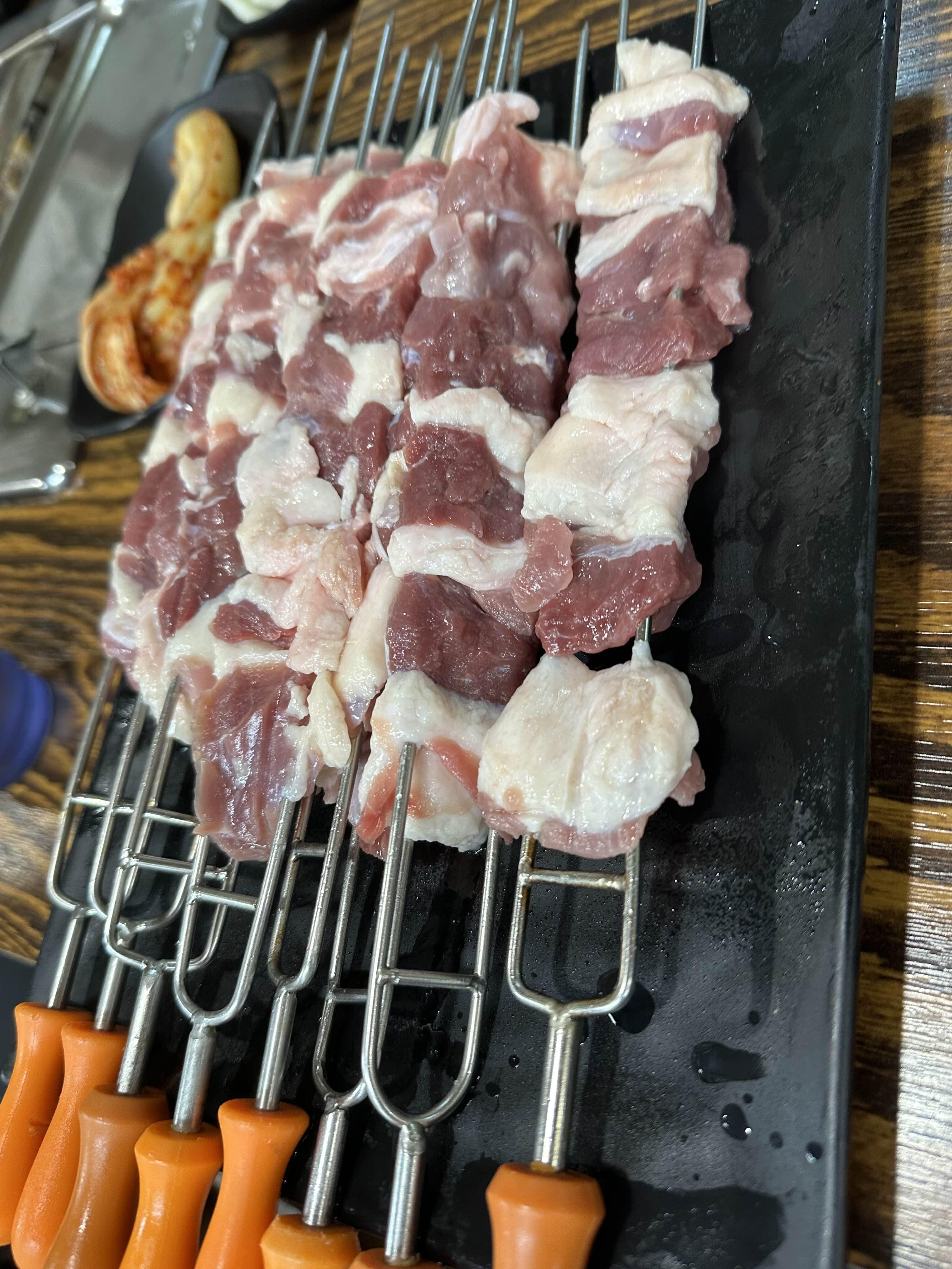 이렇게 숯에다가 회전하여 구워지는 방식입니다.
